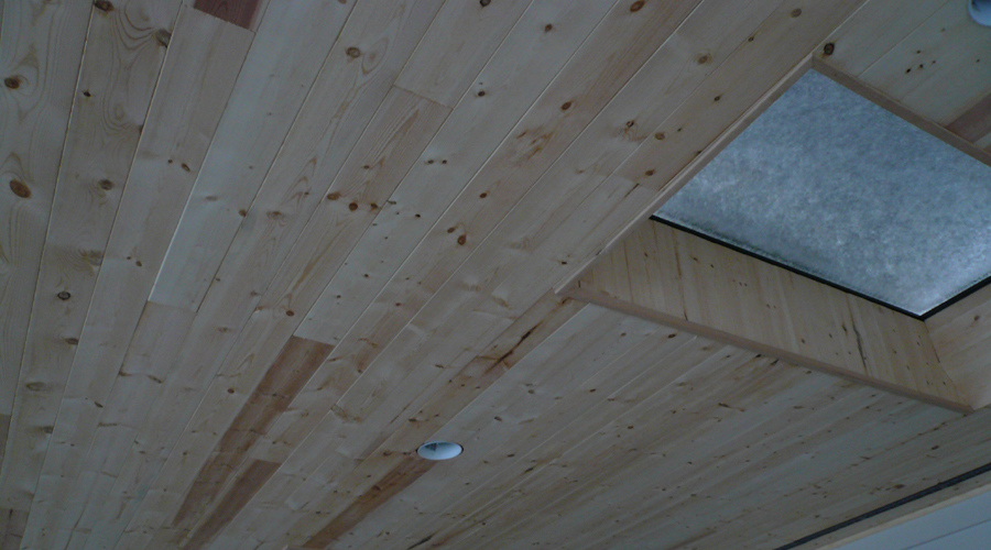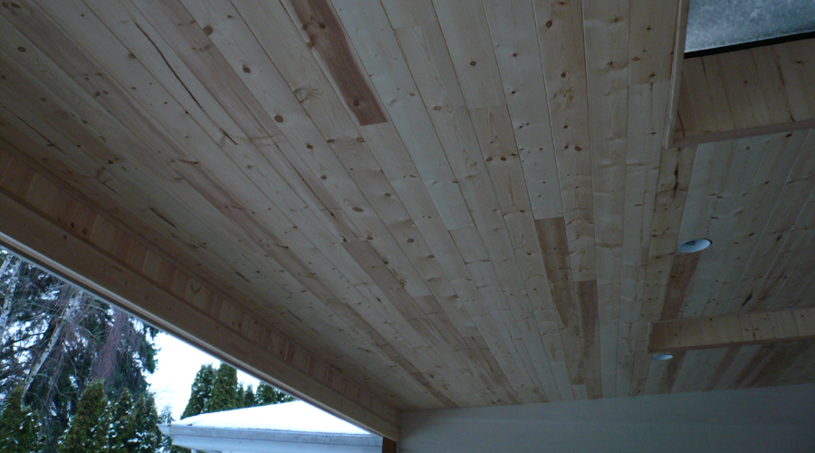 Patio cover with two skylights, recessed lighting and outdoor spearkers.
